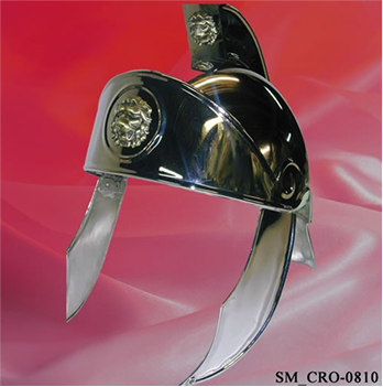 REF. SM_CRO-0810: Casco romano de latón tratado en níquel. Porta-plumero, adornos envejecidos oro viejo y cogotera recta.